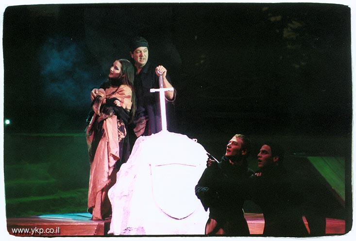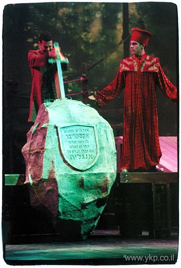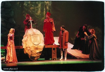 במאה החמישית לספירה, בזמנים שהיתה אנגליה שסועה מקרבות פנימיים על כס המלוכה העליון, התחנן העם לישועה. יום אחד הופיעה אבן גדולה ובתוכה חרב. על האבן היה חקוק – "אני היא החרב אקסקליבר, זה אשר יצליח לשלוף אותי מן הסלע הוא המלך החוקי של אנגליה." אבירים רבים ניסו לשלוף את האבן, אולם רק נער צעיר ולא מוכר הצליח בכך, וזאת אף מבלי שהתכוון. הנער הפך למלך ארתור (עודד מנשה), ועל כתפיו הונחה המטלה הקשה של איחוד כל ממלכות אנגליה לממלכה אחת ומאוחדת. הקוסם מרלין (דודו טופז בהופעה וירטואלית מיוחדת) מנחה אותו בדרכו ושולח את שולייתו, פרסיבל (אבי קושניר) לשמור עליו ולעזור לו. ארתור מתאהב דווקא בבתו של המלך אשר עומד בראש מתנגדיו לאחדות אנגליה. לבסוף ניאות המלך, והוא נותן לארתור את ידה של בתו גוונביר (מיכל ינאי). ארתור נאבק עם אביר נועז בשם לאנסלוט (דן תורג'מן). בתום הקרב הם מחליטים להלחם זה בצד זה ולא זה בזה. ארתור מייסד את מסדר אבירי השולחן העגול, ומציע לראשונה בהיסטוריה האנושית – צדק לכל. וכך, כשנראה שארתור וחבריו הצליחו להשתלט על התוהו-ובוהו בארץ, הופיעה אויבת ממקור לא צפוי – אחותו החורגת של ארתור, המכשפה מורגנה. מורגנה טוענת לכתר עבור בנה, מורדרד, ומבקשת להחזיר את בני האמונה לתקופה החשוכה של פחדים, אמונות-תפלות ולחשים. המאבק במורגנה ובאביריה קשה ומותיר את ארתור הרוס וכואב.